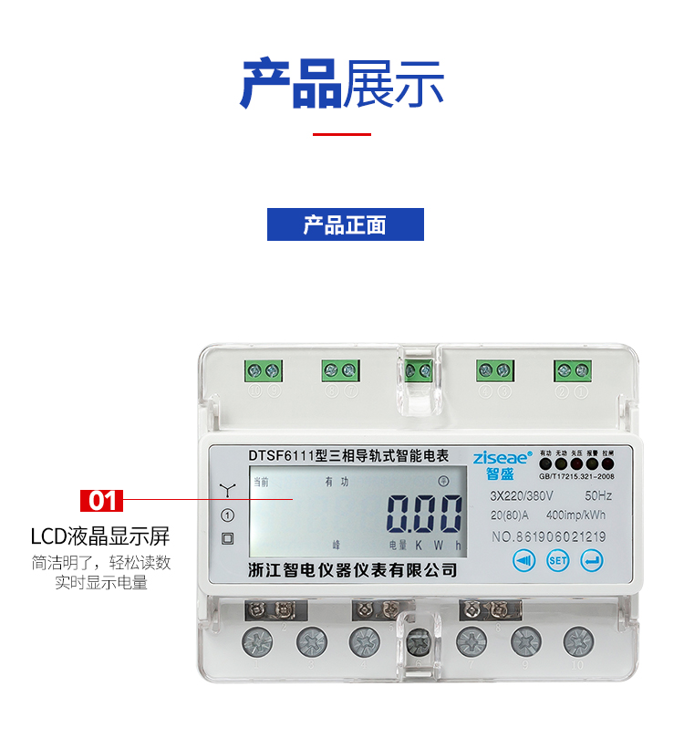 導軌電表使用LCD顯示屏測量電能和其他參數。可進行時鐘、費率時段等參數設置,具有電能脈沖輸出功能。