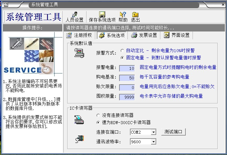1、軟件第一次安裝的時候,“系統注冊編碼”最好設置為自己內部的一組數字(不要設置為默認“系統注冊編碼”,防止別人利用相同軟件盜電,也不要泄露給非管理人員)。“系統注冊編碼”要牢記,在系統正式使用后,“系統注冊      編碼”不可修改。