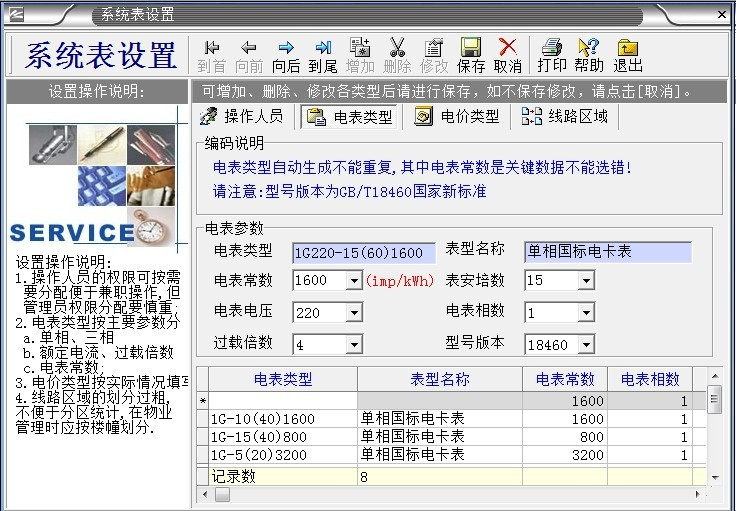 1、“電表類型”,鼠標左鍵:選擇你需要的“電表類型”