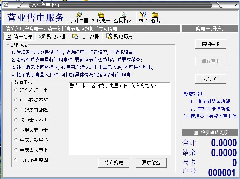 2、我們出廠之前,電表里有20度預置電量,是給客戶安裝電表用的,電表通電后,要馬上給用戶開戶,插IC卡使用,等20度預置電量用完了,再給用戶開戶,插IC卡,電表就不識別了。