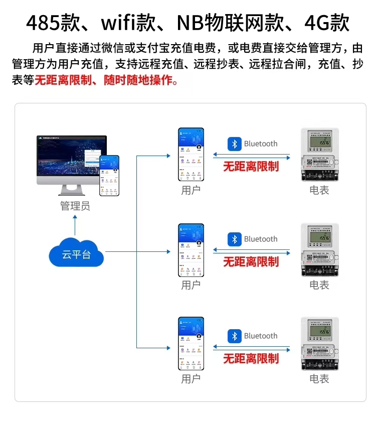 管理系統(tǒng):管理系統(tǒng)是系統(tǒng)的數(shù)據(jù)處理中心,它接收來自智能水電表的數(shù)據(jù),并通過云計算、大數(shù)據(jù)等技術(shù)對數(shù)據(jù)進行存儲、分析、處理。管理系統(tǒng)能夠生成詳細的用量報表、費用結(jié)算單等,供用戶和管理人員查看。同時,管理系統(tǒng)還具備遠程控制功能,可以通過反向控制機制對智能水電表進行通斷電、停水等操作。