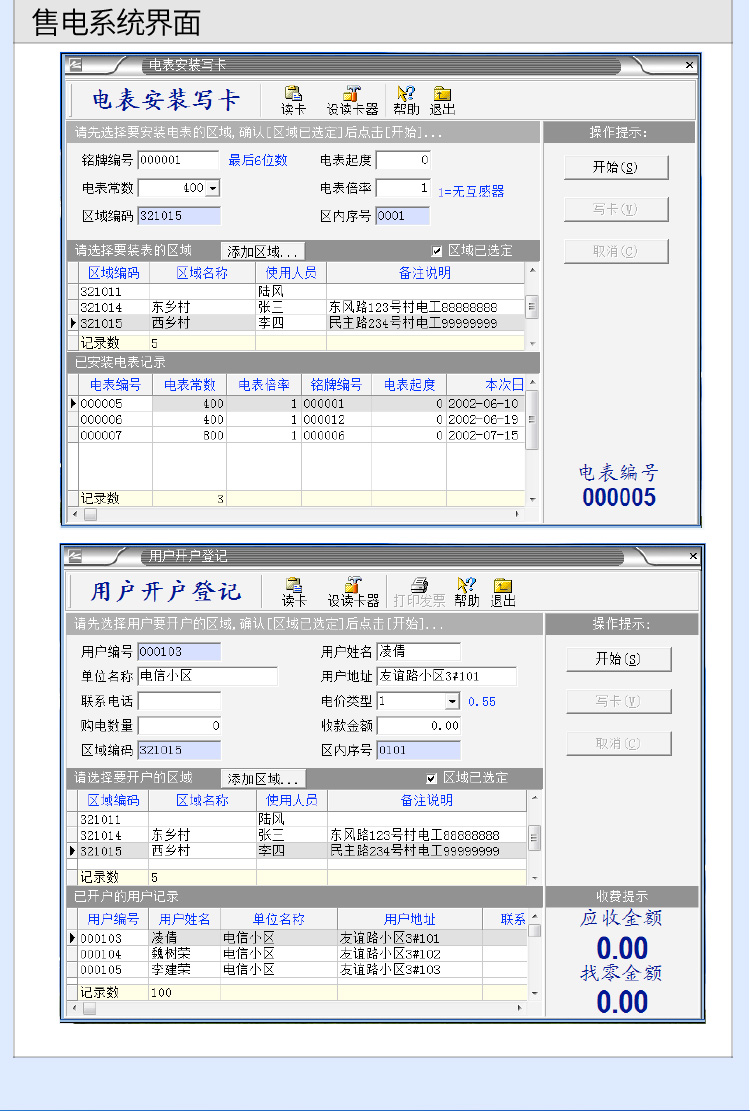 (6)預(yù)付費電表的使用流程:1將IC卡插入讀卡器 2輸入要充值的金額 3電影充值發(fā)票 4收取費用 5拔出IC卡 6將IC卡插入電表使用,具體操作如下。