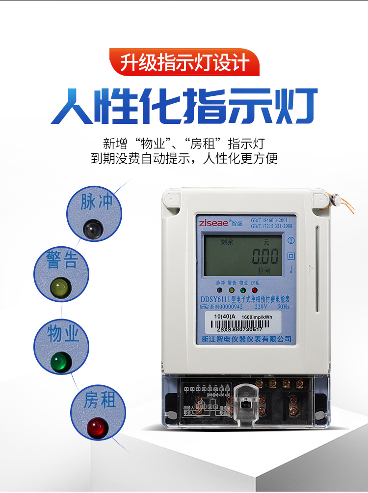 (2)預(yù)付費電表的功能:經(jīng)典款電表是上顯示剩余電量、總用電量等,1代物業(yè)版電表上顯示剩余于金額、總用電量等,2代物業(yè)版電表上顯示剩余金額、總用電量、物業(yè)、房租剩余天數(shù)、北京時間等具體功能如下。