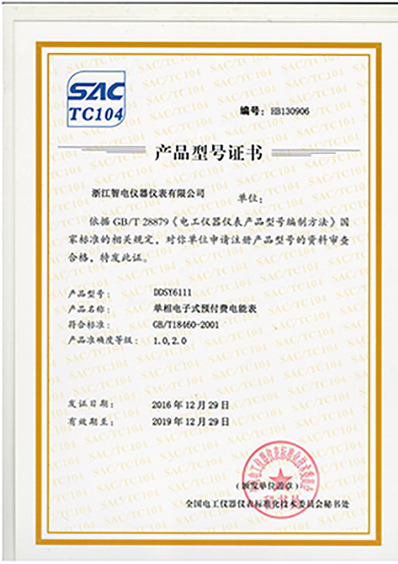 DDSY6111產(chǎn)品型號證書