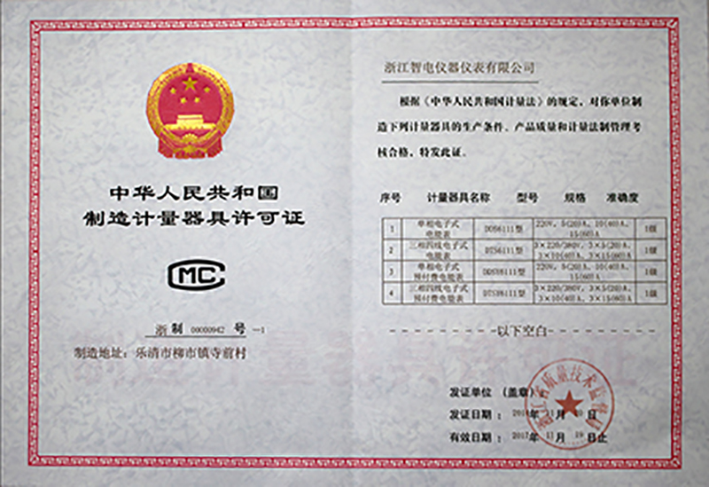 制造計量器具許可證