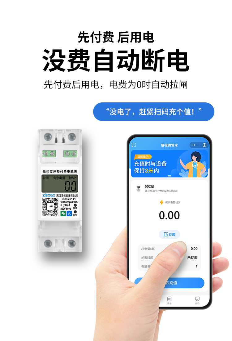 單相導軌藍牙掃碼充值電表