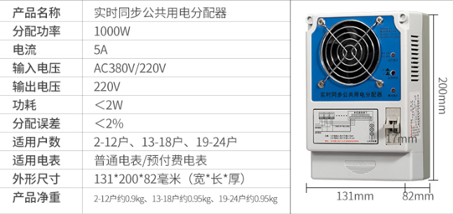 若有用戶的空氣開關斷開或未接到用電分配器上時,分配器自動識別該用戶未用電而不參與公共用電分配。
