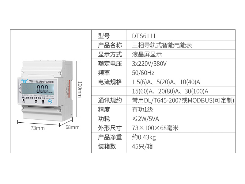 型號:DTS61111三相導軌電表-4P(RS485)